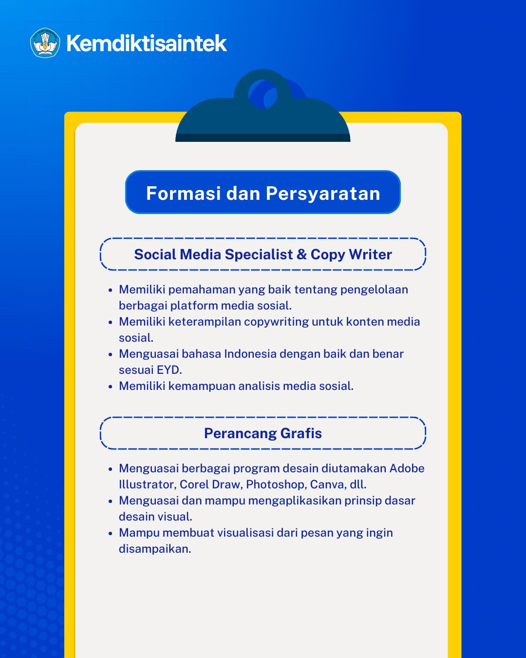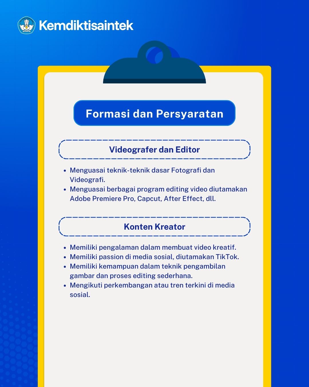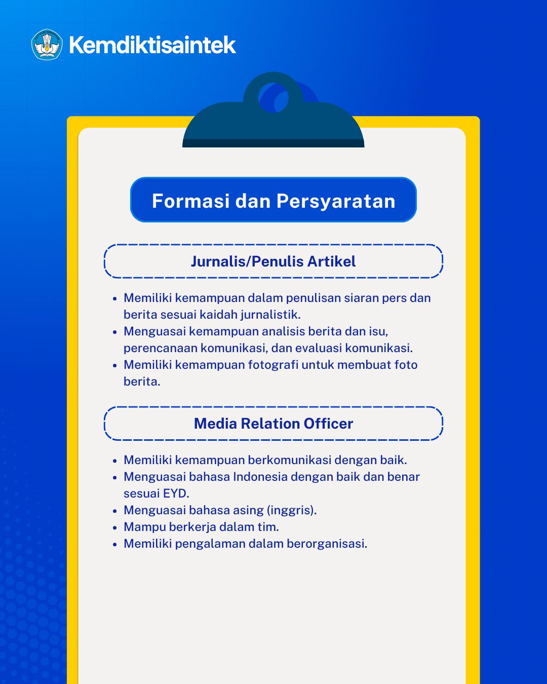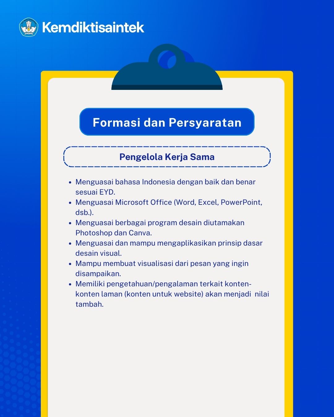 PENDAFTARAN PRAKTIK KERJA LAPANGAN (PKL) KEMDIKTISAINTEK Jumat, 10 April 2026 - 11:14:14 WIB Dibaca: 173 kali